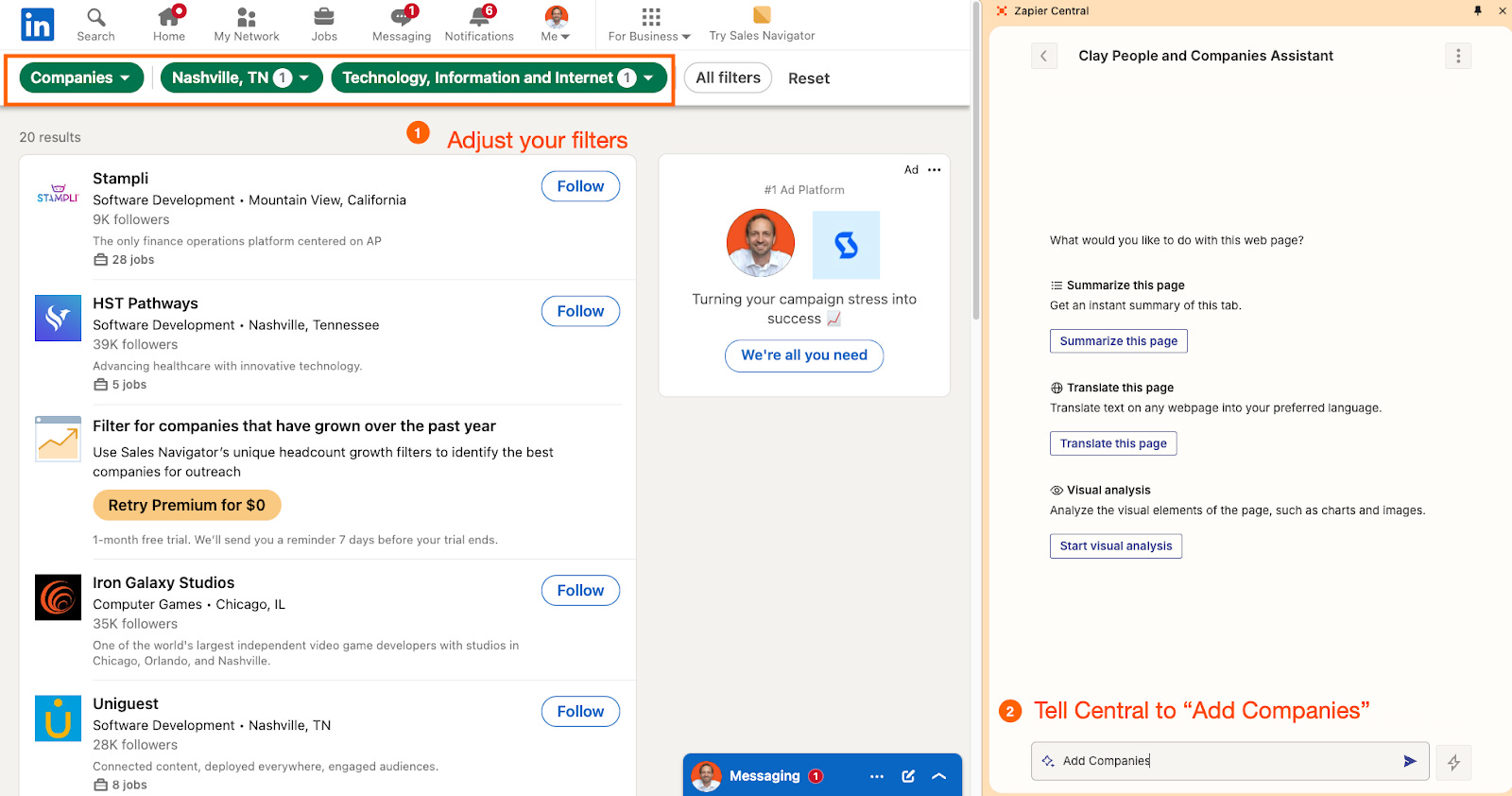 Zapier Central, its AI agent, struggles with LinkedIn prospecting. For example: