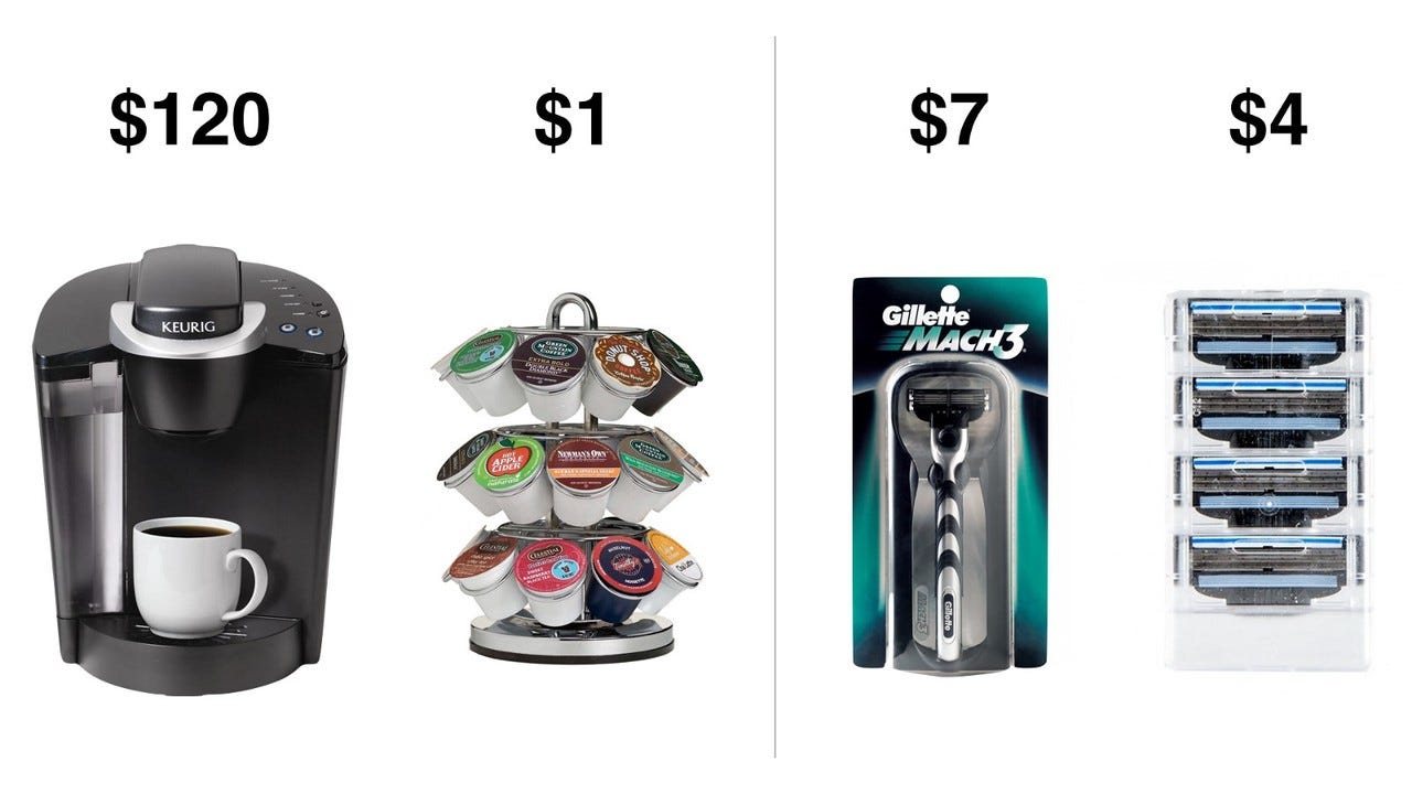 One company that does a fantastic job of exploiting this tendency is Gillette. Gillette pioneered what has become known as ‘the razor blade business model’, which involves selling a low margin product priced affordably enough to attract wide swaths of people, then a high-margin product to create healthy profits. Gillette has been able to build a $57 billion company by hooking users with its low priced razors and then making serious profit with its high margin replacement blades.