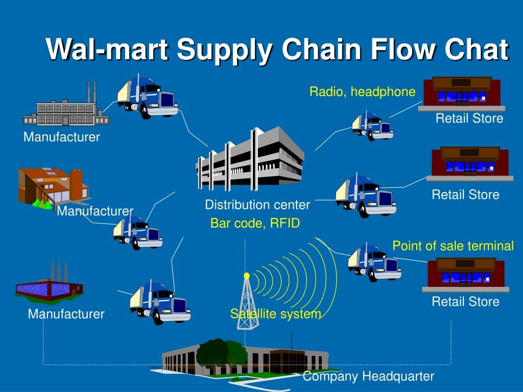 Walmart took the polar opposite approach, integrating each store into a wider logistics, computing, and supply chain network. Coordinated buying across the entire network meant that Walmart was able to gain tremendous negotiating power with suppliers and offer rock bottom prices to customers. Insights from across the entire Walmart network were captured into a centralized system, providing information on what products were popular and simplifying inventory management. A coordinated logistics and warehousing system also meant huge savings on shipping costs and the ability to restock items quickly. Walmart was so successful with its strategy that K-Mart ultimately folded, filing for Chapter 11 bankruptcy in 2002.